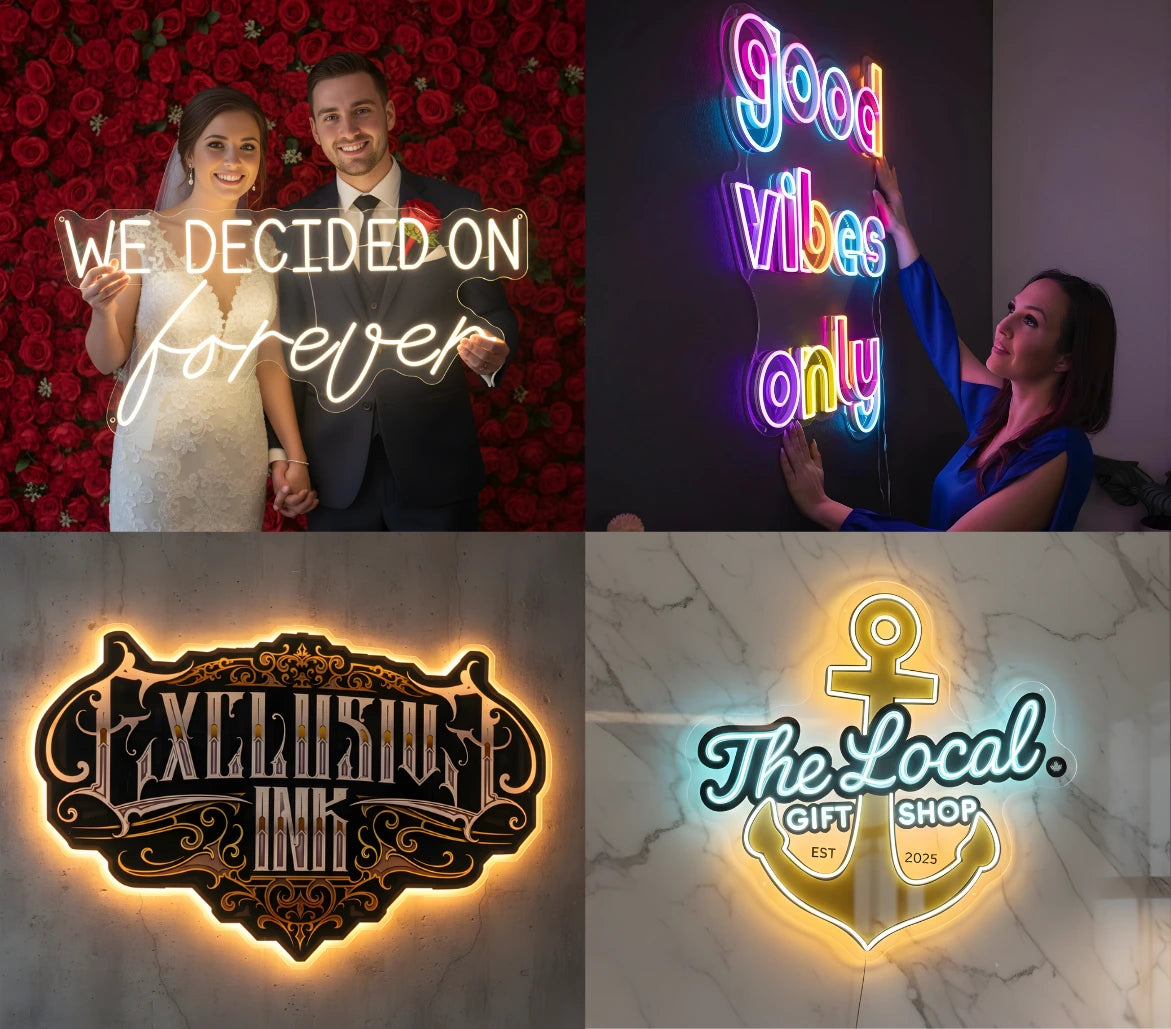 Want a personalized sign? Fill out our form, and we'll send you a free mockup design and quote within 24 hours. Alternatively, create a text-based neon sign in minutes with our easy-to-use tool.